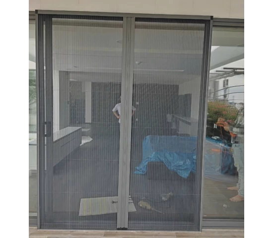 Loại cửa lưới này có thiết kế dạng xếp, lưới được gấp gọn lại khi không sử dụng, tạo không gian thông thoáng. Cửa lưới xếp thường được sử dụng cho các cửa có kích thước lớn như cửa ban công, cửa phòng khách. Màu nâu của cửa lưới xếp mang lại vẻ đẹp hiện đại và sang trọng cho không gian.