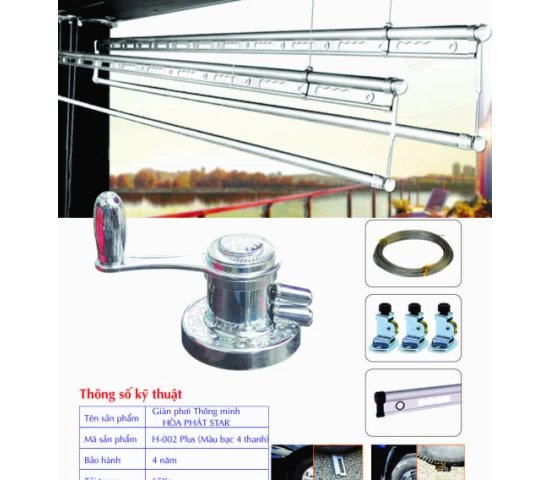 Giàn Phơi Gắn Trần Hòa Phát H-002 PLUS MÀU BẠC 4 THANH