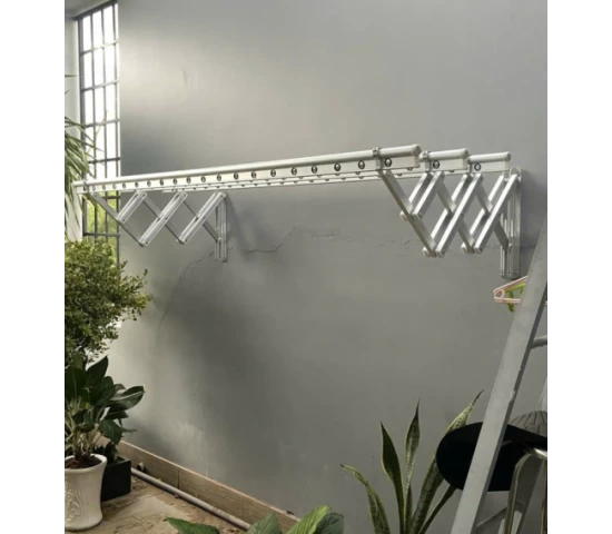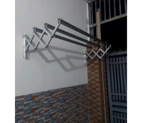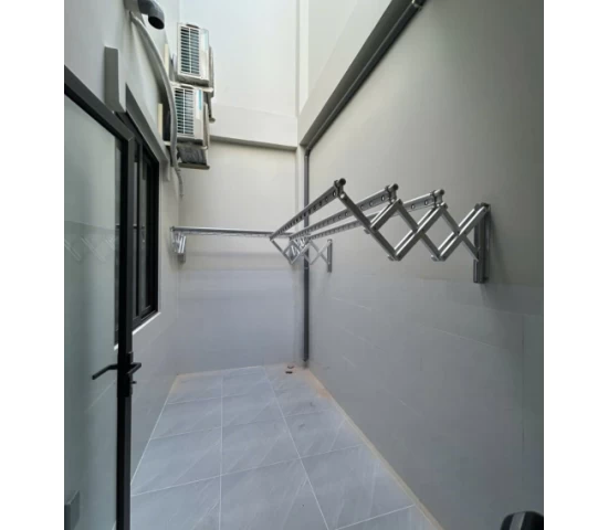 Giàn phơi gắn tường inox có thiết kế gắn trực tiếp vào tường, có thể gập gọn khi không sử dụng. Giải pháp này đặc biệt phù hợp với những gia đình có ban công nhỏ, nhà phố hoặc chung cư.